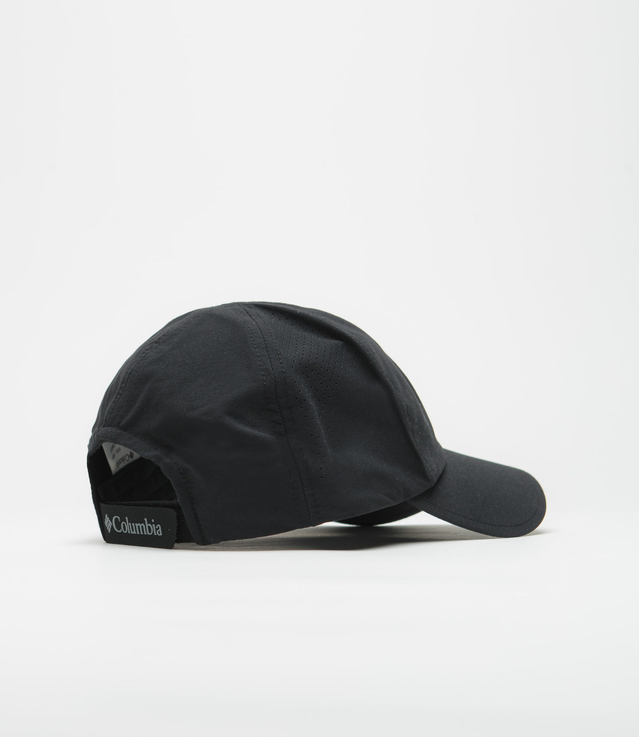 Columbia Silver Ridge Cap in Black. Designed with vented rear panels, this single sized Columbia cap is styled with a six panel construction with an Omni-Wick™ sweatband. Featuring a curved peak and Omni-Shield™ advanced repellency, this black Columbia cap is finished with an adjustable rear fastening with printed ‘Columbia’ branding displayed across the crown.