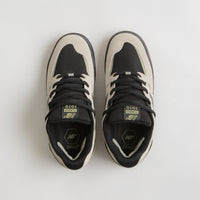 New Balance Numeric 1010 Tiago Lemos Shoes in Sea Salt and Black. Designed with no-sew overlays and a reinforced toe, this New Balance Numeric 1010 arrives as a Tiago Lemos pro model. Featuring a moulded Ortholite insole, a dual-density FuelCell midsole and a FantomFit stabiliser, this white black NB Numeric 1010 also features a multi-density gum rubber outsole. Finished with N side wall logos, a padded collar and with two-tone NB# Tiago 1010 tongue labels.