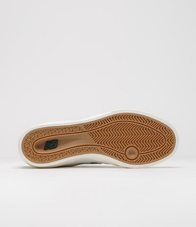 New Balance Numeric 272 Shoes in White and Green. Inspired by classic running styles, this New Balance Numeric 272 is crafted with mixed leather and canvas uppers with a vulcanised construction. Featuring a reinforced one-piece toe, a cushioned Ortholite sockliner and a rubber heel stabiliser, this white and green New Balance Numeric 272 is finished with reflective detailing, green leather N side logos and with woven NB# 272 tongue labels.