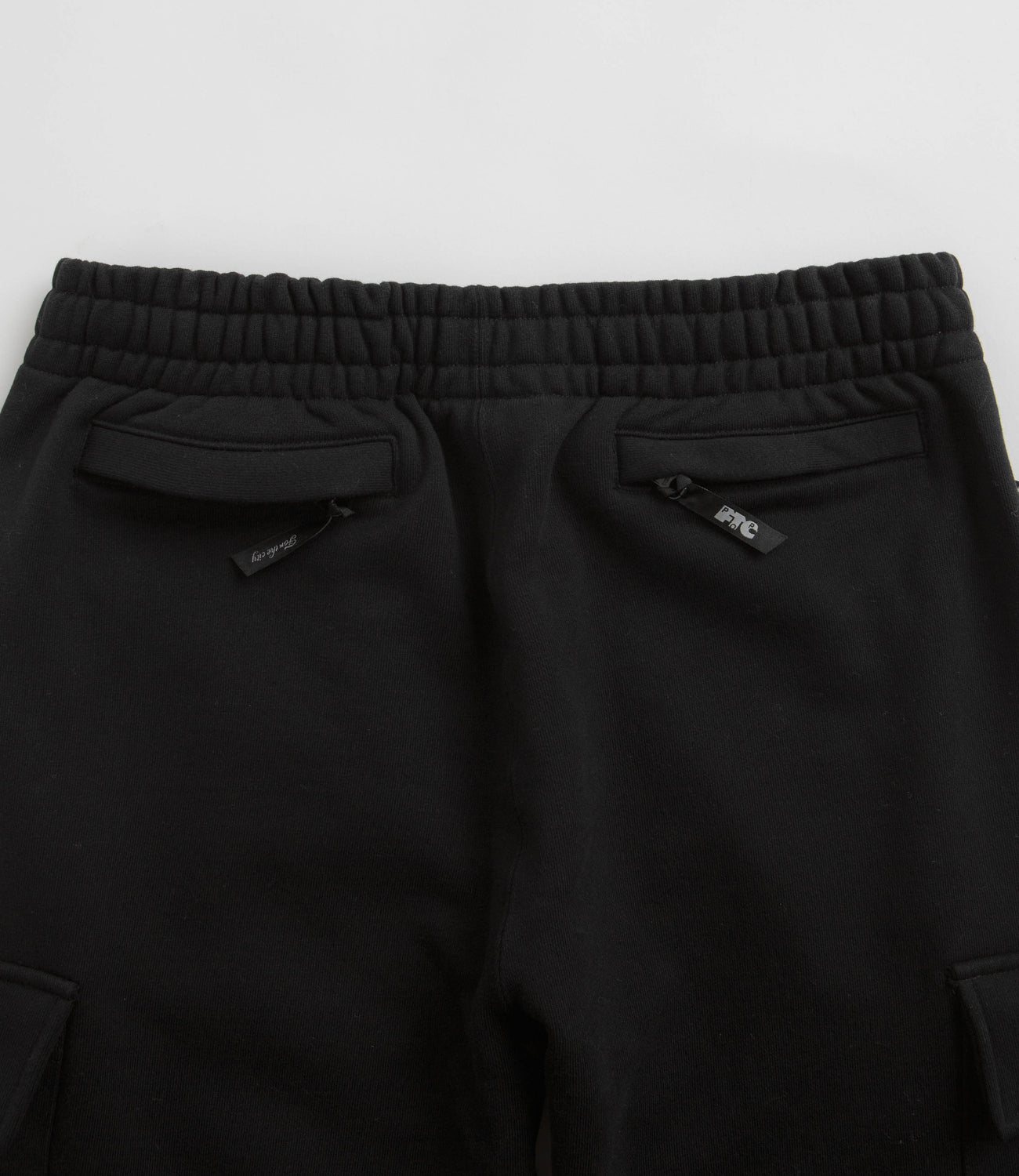 Pop Trading Company x FTC Cargo Sweatpants in Black. Part of the brand’s latest capsule with FTC, these Pop Trading Company sweatpants are made from 100% heavyweight cotton with toggle-cord adjustable cuffs. Featuring an elasticated drawstring waist, two zippered front pockets and two rear pockets, these black Pop Trading Company sweatpants are finished with additional cargo pockets, co-designed zip pulls and with embroidered logo banding.
